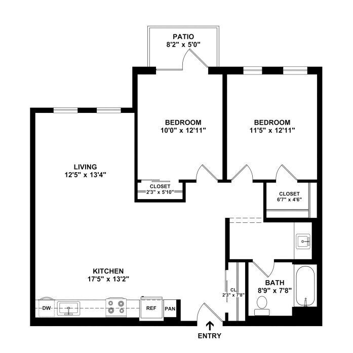 Floor plans are artist’s rendering. All dimensions are approximate. Actual product and specifications may vary in dimension or detail. Not all features are available in every apartment. Prices and availability are subject to change. Please see a representative for details.